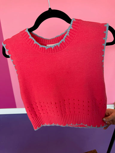Defect - Very small snag on front Add a fun twist to your wardrobe with the Valerie Sweater Vest. Featuring playful contrast thread blanket stitch...