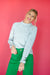 Introducing the Jocelyn Ruffle Neck Sweater—where cozy meets cute! This dove grey beauty features a charming ruffled neckline that adds instant personality to your everyday look. The matching ruffle cuffs bring a playful touch, while functional button details at the cuffs let you adjust the fit just right. Perfect for layering or wearing solo, this sweater combines comfort with that extra dash of style that makes getting dressed fun. Soft, versatile, and undeniably adorable.