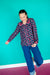 Brighten your wardrobe with the Pamela Collard Button Blouse in charming black and raspberry. This playful long-sleeve top features delicate floral patterns and a sweet Peter Pan collar, accented by striking solid contrast details. Perfect for adding a touch of whimsy to any outfit, it offers both comfort and style for day-to-night wear.