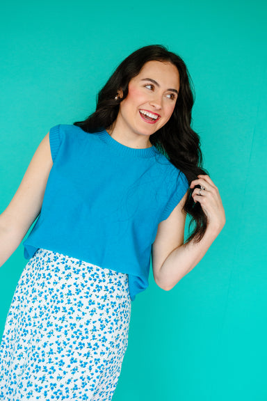 Faren Back Slit Sleeveless Sweater - Turquoise Blue