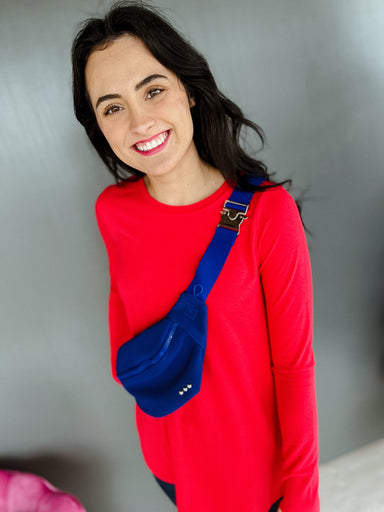 Layer up in style with the Deena Button Down Cardigan in True Red! This cozy round neck sweater features functional buttons that make it effortless...
