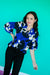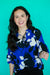 Elias Split Neck Ruffle Blouse - Royal Blue + Black
