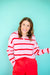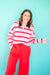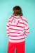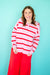 Wrap yourself in cozy charm with this striped hooded half button pullover sweater. The playful stripes add visual interest while the convenient half button front lets you adjust your coverage on the fly. Perfect for layering or wearing solo, the attached hood keeps you snug during chilly days. Whether you're lounging at home or running errands around town, this versatile pullover delivers comfort without compromising on style. A wardrobe essential that's as fun to wear as it is functional.