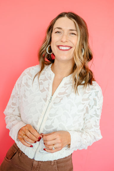 Elevate your everyday style with the Alexandra Embroidered Jacket in cream—a playful twist on the classic bomber silhouette. Delicate floral embroi...