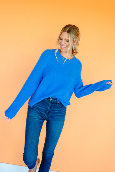 Wrap yourself in cozy comfort with the Collins Soft Sweater in Cornflower/Bright Blue. Its super soft fabric feels like a gentle hug, while the flo...