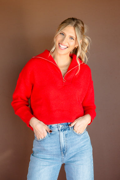 Meet your new go-to sweater! The Tracey Collared Half Zip-Up in True Red is all about that soft, touchable fabric that makes you want to wear it ev...