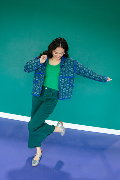 Bring a splash of fun to your wardrobe with this Diane Round Neck Sweater in bright navy and green. Featuring an abstract floral knit and a cozy ri...
