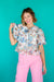 Ariana Collared Peplum Blouse - Mushroom + Smokey Blue + Pink