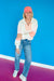 Cindy Color Block Quarter Zip Pullover - Cream + Tangerine