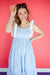 Float through your day in the Kaylynn Tiered Maxi Dress, featuring playful shoulder satin ties and charming contrast smocking. Its flowing tiers add a breezy, feminine touch, while the powder blue hue keeps things fresh and fun. Perfect for sunny outings or casual celebrations, this woven maxi dress combines comfort with a flirty flair.