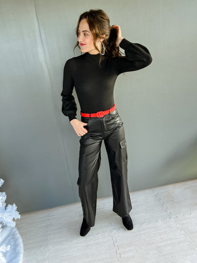 Step into effortless style with the Angie Long Sleeve Jumpsuit in Black. This lightweight knit jumpsuit features a flattering V-neck and an adjusta...