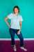 Riley Boucle Peplum Blouse - Sky Blue + Soft White