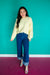 Experience ultimate comfort in this light blue pullover, featuring a soft garter stitch texture and a classic crew neckline. Designed with an oversized, drop-shoulder silhouette and trendy wide sleeves, this sweater offers a relaxed aesthetic. The rolled-edge hemline adds a touch of effortless charm.