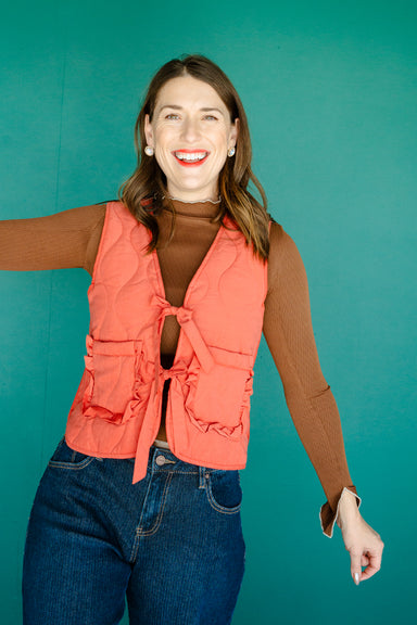 Add a dash of charm to your wardrobe with the Amelia Button Sweater Vest in rich dark brown. This sleeveless ribbed top buttons down for easy layer...