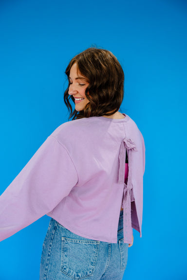 The perfect mix of cozy and cute! This relaxed-fit cropped sweatshirt features an adorable bow tie-back detail that adds a flirty twist to your eve...