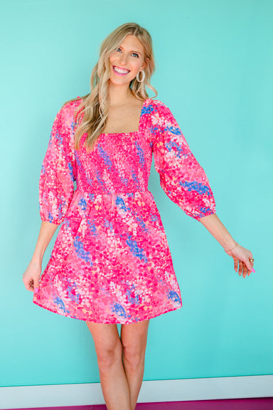 Leah Smocked Mini Dress - Shocking Pink + Bright Blue + Fuchsia