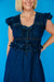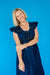 The Alana Denim Midi Dress in Dark Denim combines playful charm with elegant details. Featuring ruffled cap sleeves and a ruffled waistline, this dress adds a flirty touch that enhances your silhouette. The sweet bow detail brings a fun, feminine flair, while the midi length keeps things effortlessly stylish for any casual day or night out.