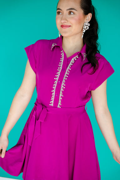 • Farah Rhinestone Mini Dress - Vibrant Amethyst