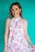 Twirl into spring with the Teagan Halter Mini Dress, where playful florals meet effortless elegance. This flowy mini features a flattering halter neckline and a charming tie closure at the back for a touch of personality. The vibrant pink and blue botanical print brings garden-fresh vibes to any occasion, while the relaxed silhouette keeps you comfortable and carefree. Perfect for brunch dates, garden parties, or whenever you want to feel like the main character.