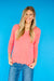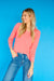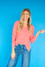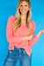 Faren V-Neck Waffle Knit Top - Warm Pink