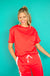 Maren Raw Edge Tee - Coral Red