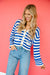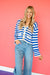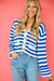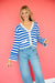 Halley V-Neck Cardigan - Bright Blue + White