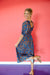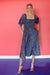 Lottie Balloon Sleeve Midi Dress - Chocolate + Bright Blue