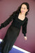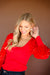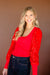 Elevate your everyday style with this show-stopping blouse featuring a chic square neckline and fitted 3x3 ribbing for a flattering silhouette. The magic happens with sequin-embellished fabric paired with dramatic balloon sleeves for an unexpected twist. Crafted from a well-stretched knit, this top moves with you while maintaining its shape. Perfect for date night or turning heads at any occasion.