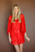 Twirl into the spotlight in this stunning sequin mini dress featuring dramatic balloon sleeves and a flattering V-neckline. Fully lined for comfort and confidence, this easy-fit design moves with you whether you're celebrating a special occasion or dancing the night away at your next party. The shimmering sequins catch every light, making you the star of the show in true red elegance.
