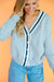 Hope Striped Detail Cardigan - Dove Grey + Navy