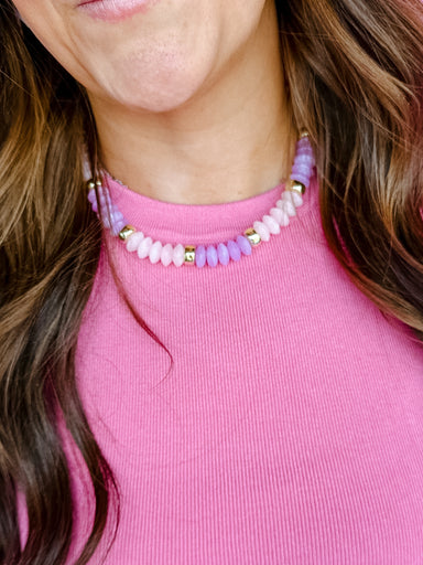 All Accessories are considered Final Sale and are not eligible for Return Strung with vibrant glass beads that transition through a rainbow of hues...