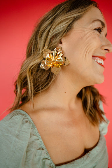 The Maxine Earrings are a bold take on florals, designed in a sculptural gold finish that feels both modern and timeless. Featuring layered, hammer...