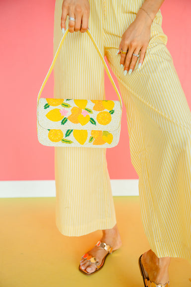 All Accessories are considered Final Sale and are not eligible for Return Designed in a beaded style, this shoulder bag features a lemon-patterned ...
