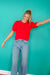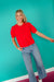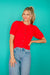 Julia Short Sleeve Scalloped Cardigan - True Red