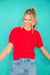 Wrap yourself in effortless charm with this delightful short sleeve cardigan. Featuring adorable scalloped edges that add a touch of whimsy, it's the perfect layer for any occasion. The airy puff sleeves bring a playful vibe while the true red hue makes a bold statement. Slip it on over your favorite dress or tee for instant style that feels as good as it looks. A wardrobe essential that's anything but ordinary.