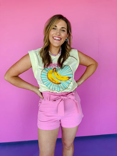 Turn heads with these Jael Paperbag Shorts in a vibrant Shocking Pink/Rose color. Designed with a sash belt, they're perfect for a day out shopping...