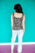 Effortless style meets comfort in this leopard tank. The soft square neckline flatters while the classic leopard print in stone and black works with everything in your wardrobe. Lightweight and breathable, it's perfect for layering or wearing solo on warmer days. A versatile essential that transitions seamlessly from casual to dressed up.
