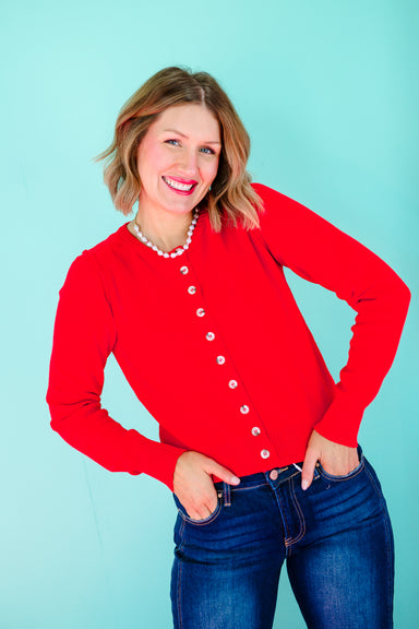 Elevate your everyday style with this charming Val Bow Cardigan in True Red. The signature bow detail at the neckline adds a touch of whimsy and so...