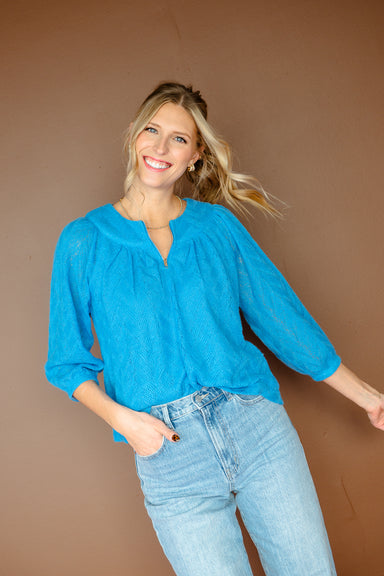 Color is Corn + Cornflower for Springs.This item was draped and verified by a House of Colour consultant. Model is 6'1 and is wearing a size Small....