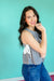 The Kellen Peplum Top brings a touch of effortless charm with its soft blue gingham print and delicate embroidered daisies. Designed with a breezy sleeveless cut and a relaxed, flowy silhouette, this top is perfect for warm, sunny days. The lightweight fabric ensures all-day comfort, making it a go-to piece for casual outings. Pair with white denim or your favorite shorts for a fresh and feminine look.