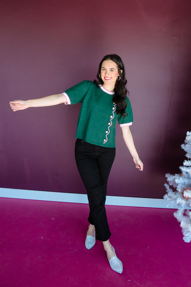 Introducing the Ainsley Button Detail Top—your new go-to for effortless style! This charming short sleeve sweater features an off-center scalloped ...