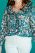 Brianna Ruffle V-Neck Blouse - Kingfisher + Amber