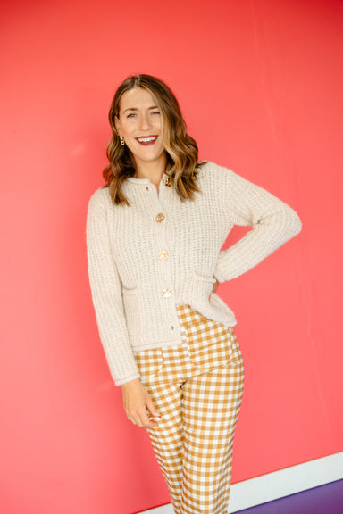 Meet your new favorite layering piece! The Shonda Chunky Cardigan features oversized metal buttons that make a statement, paired with practical pat...