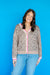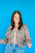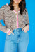 Add a wild twist to your wardrobe with the Sarah Leopard Cardigan in Mushroom + Rose. This playful piece features a bold leopard print in cool tones and accented with contrasting striped trim for an unexpected pop. Functional buttons let you style it your way, making it perfect for layering. Embrace fun, chic comfort wherever you go!
