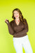 Cozy meets chic in this Scarlett Collared V-Neck Sweater in dark brown. Its soft, stretchy fabric hugs you just right, while the playful cuff slits with button detail add a flirty twist to your everyday look. Perfect for layering or rocking solo, it’s your new go-to sweater for effortless style and unbeatable comfort.