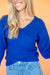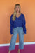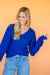 Cozy up in the Terri Wrap Ribbed Sweater in Bright Navy! Its playful ribbed knit and flattering surplice neckline create a chic crossover look, while drop shoulder sleeves and fitted cuffs add a relaxed yet polished vibe. Perfect for going from day to night, this sweater brings fun and comfort to your everyday style.