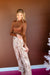 $54.991 color availableElevate your wardrobe with the Cynthia Snake Print Button Blouse—where silky satiny feel meets bold chocolate, coffee, and beige tones. This playfu...