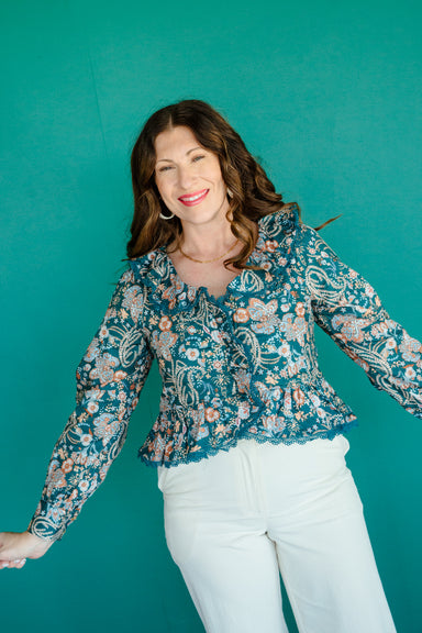 It’s easy to see why we get so many compliments in this paisley lace trim quilted top! Quilted woven fabric, in a vintage paisley print throughout,...