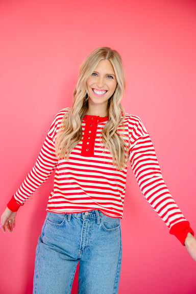 Stripes never go out of style—especially when they're this charming. The Annalise Striped Henley Pullover brings effortless cool to your everyday r...