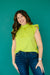 Elevate your look with the Shantel Suede Ruffle Blouse in vibrant lime. This playful blouse features a soft suede texture, a charming mock neck, and delicate ruffle details that add a flirty touch. The tie-back closure lets you customize the fit while keeping things effortlessly chic. Perfect for adding a pop of color and fun to any outfit!